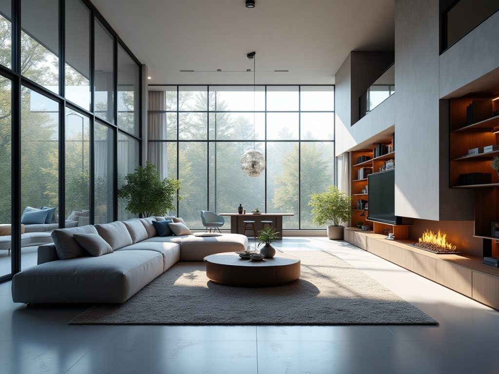 - Styl industrialny – wyeksponowana struktura, surowe wykończenia, podziały modułowe.